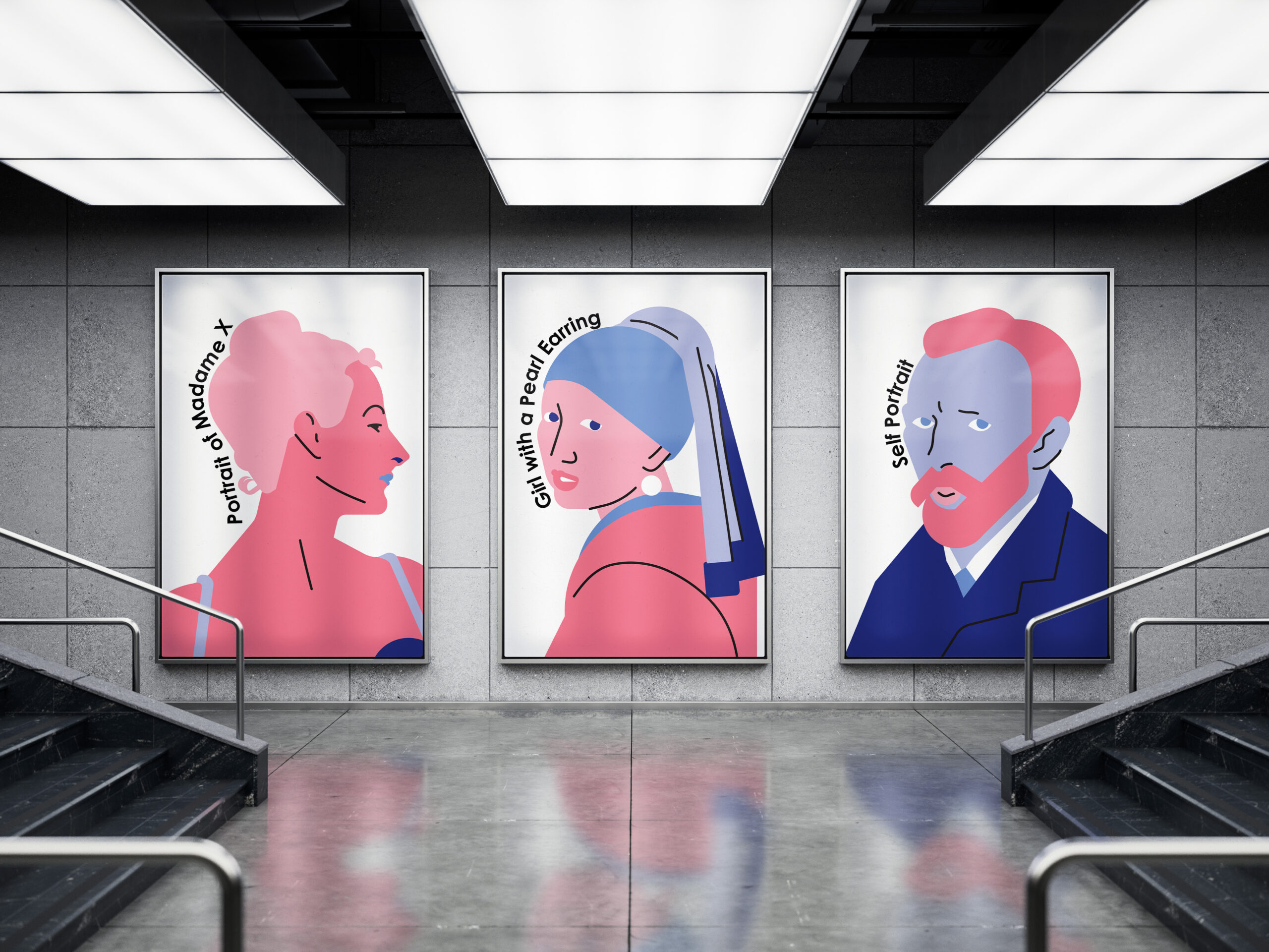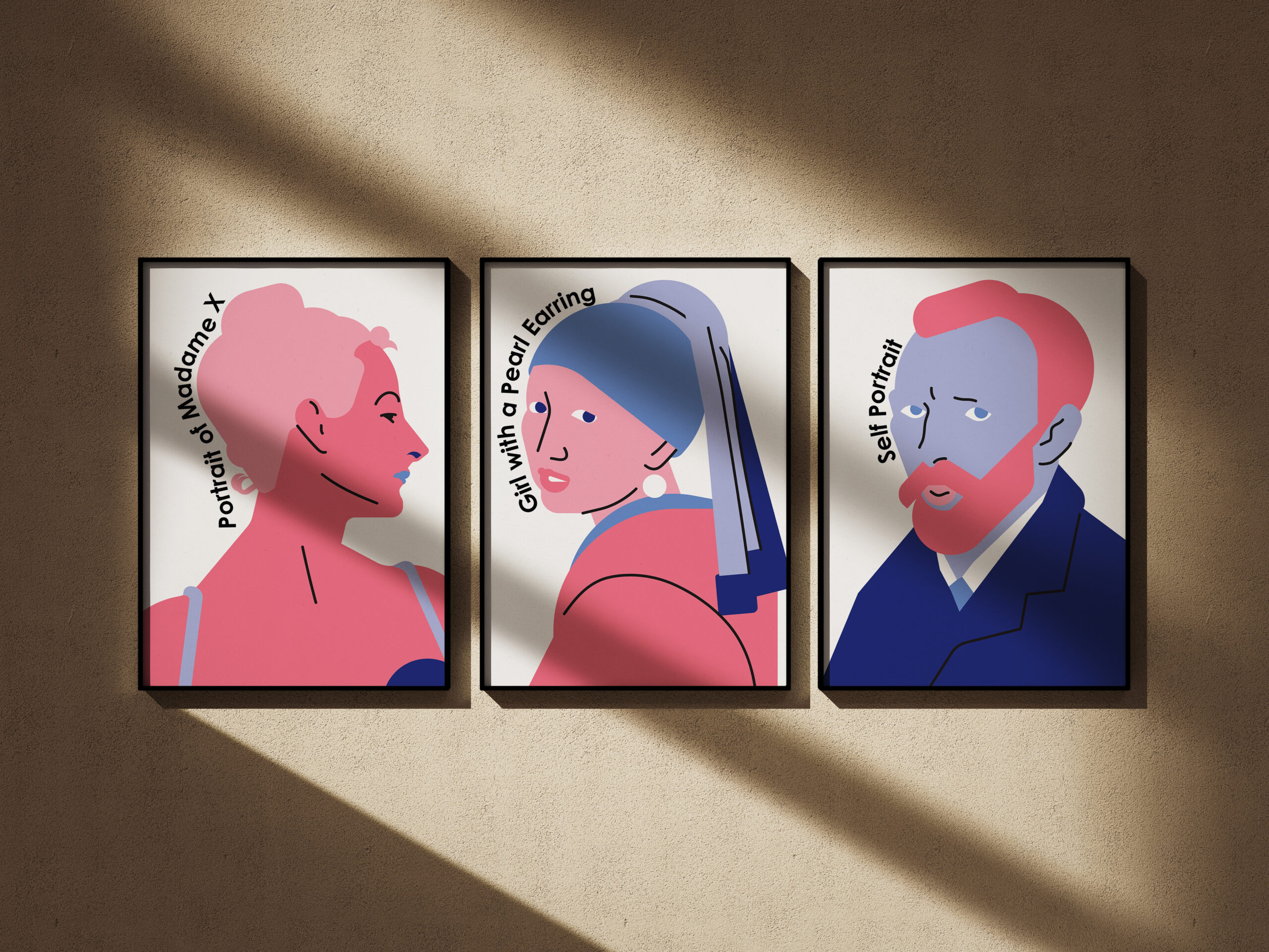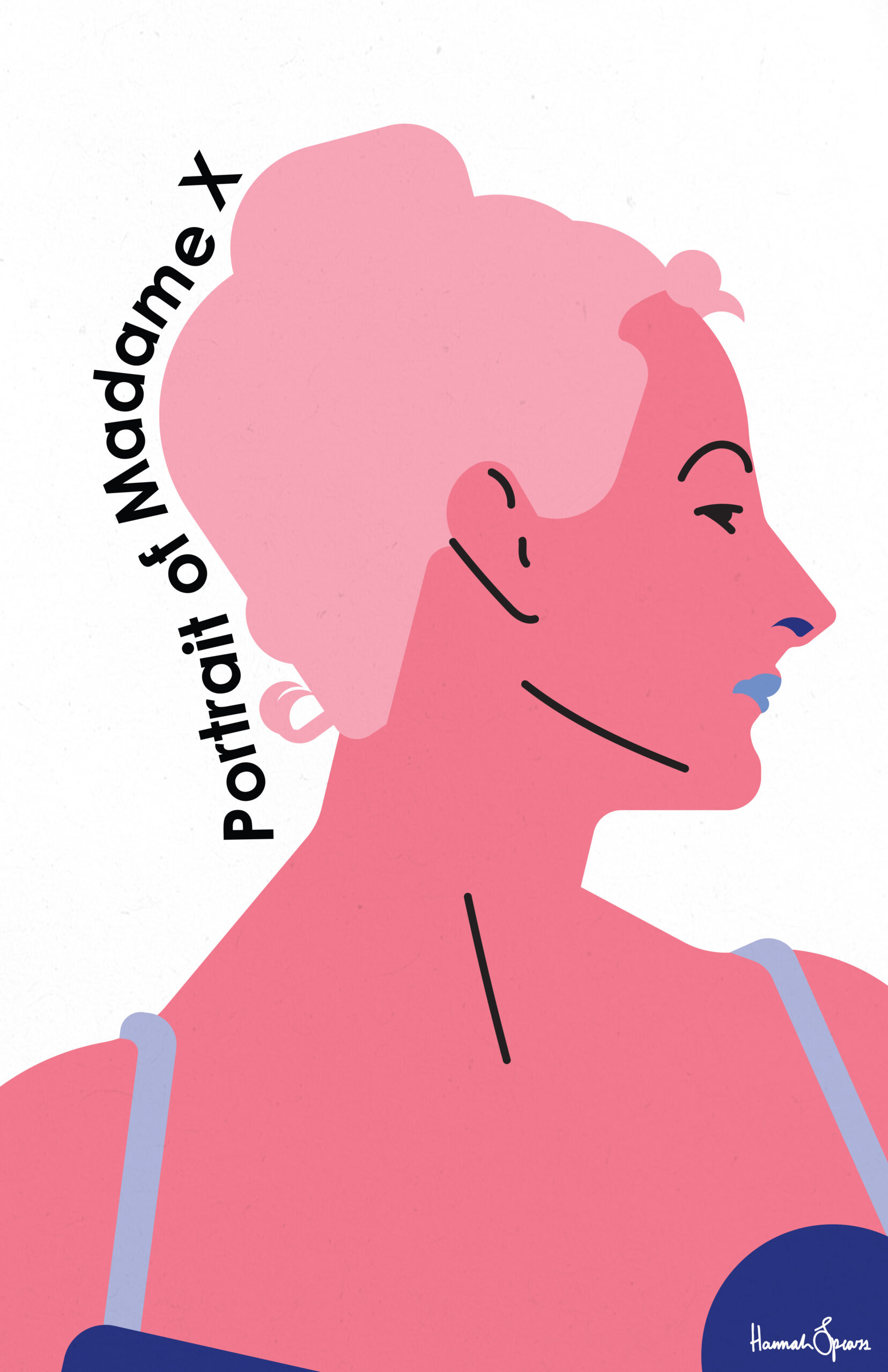 I originally made these portraits as a way to test my abilities in abstraction with a limited color palette. I had made these as a poster set for a faux museum marketing campaign, and found that I preferred them on their own. I had submitted all three of these to the 2025 Annual Juried Student Art Exhibition at TTU’s Derryberry Art Gallery, and the Portrait of Madame X was accepted into the show.