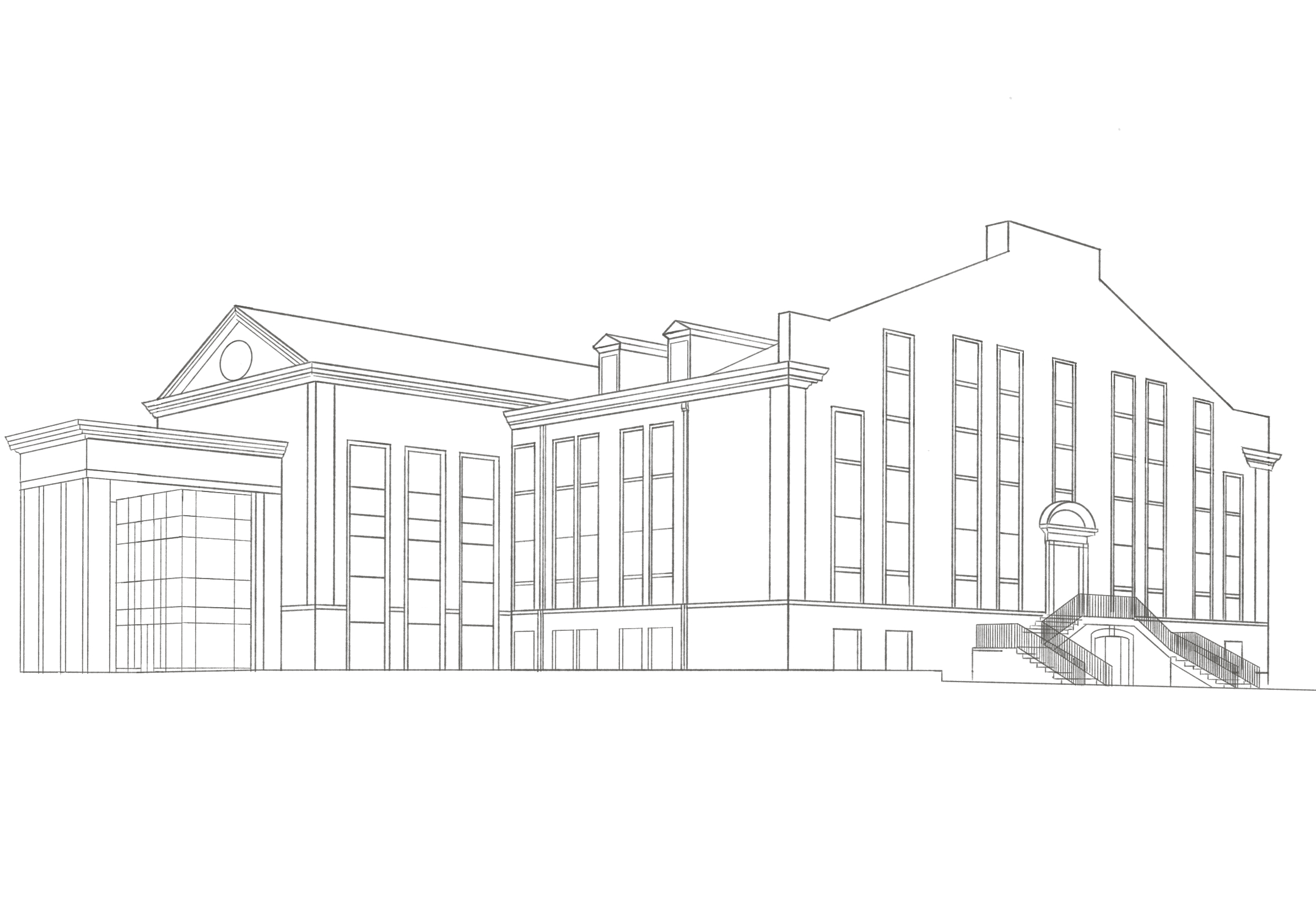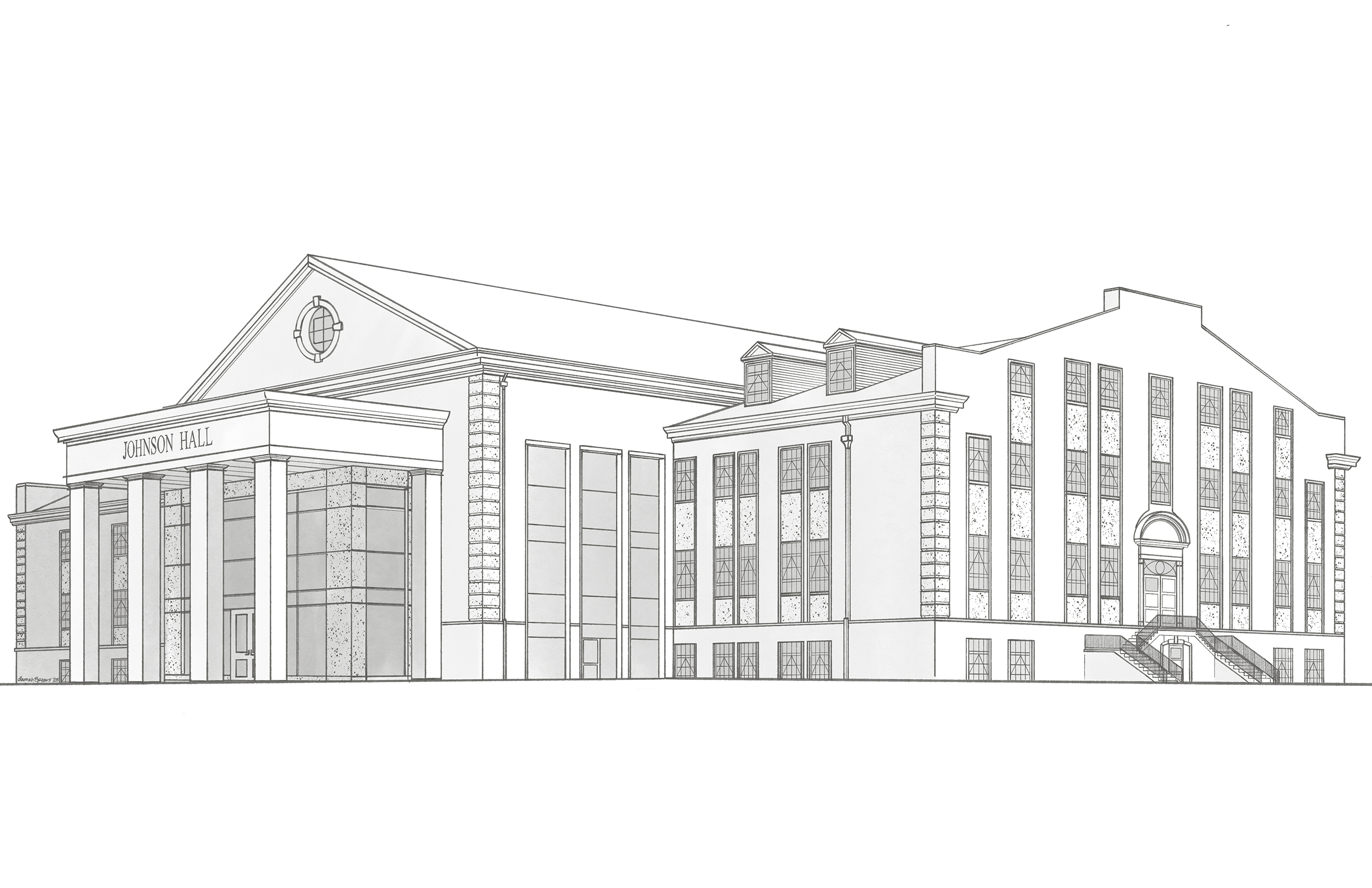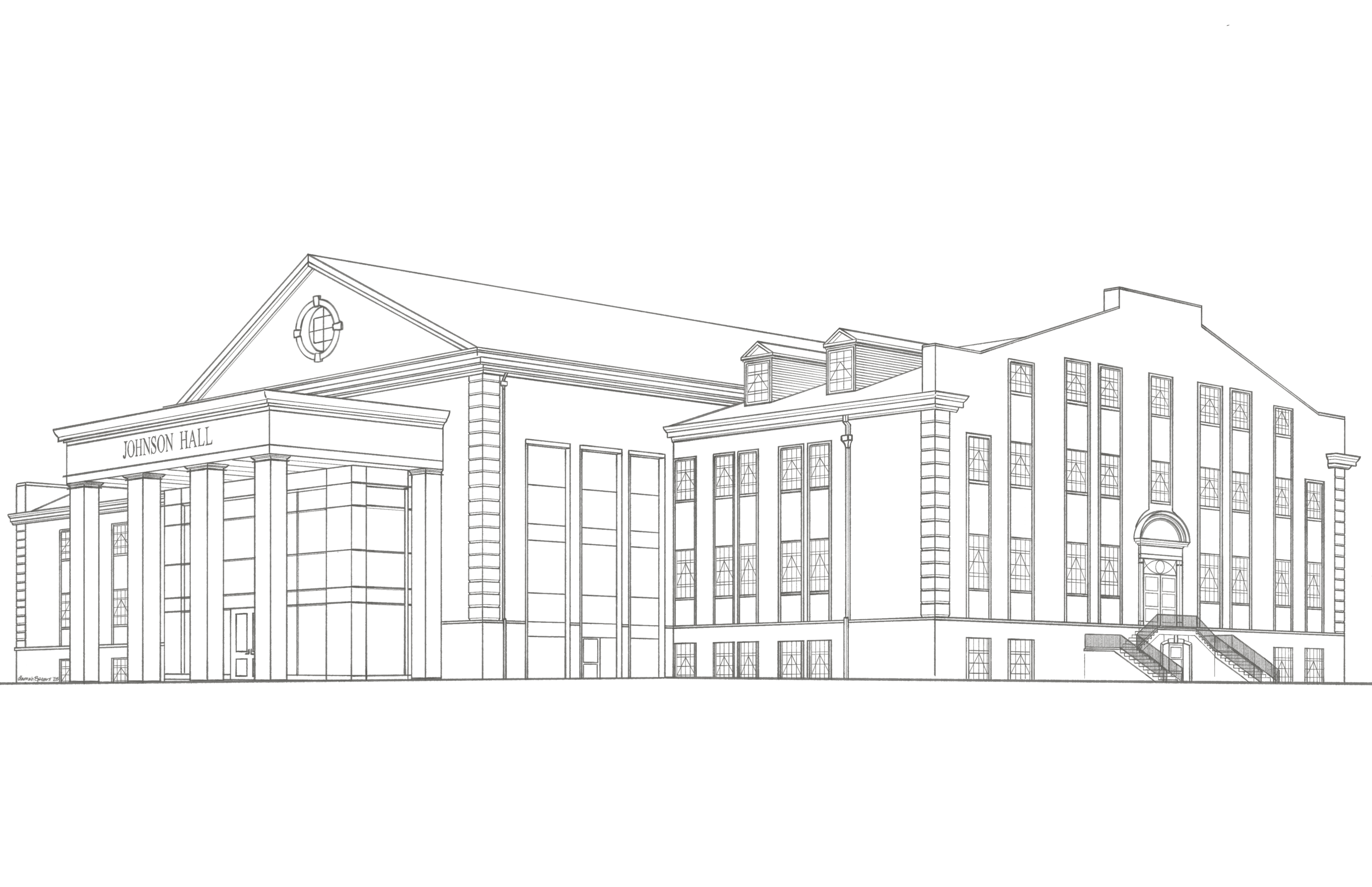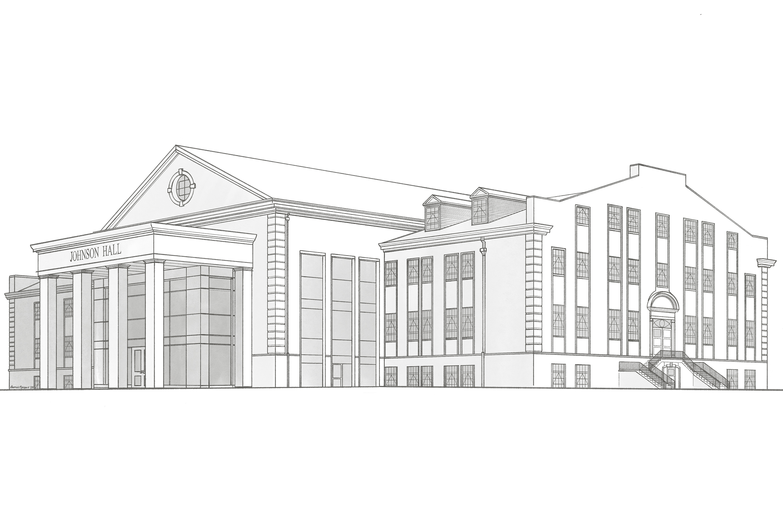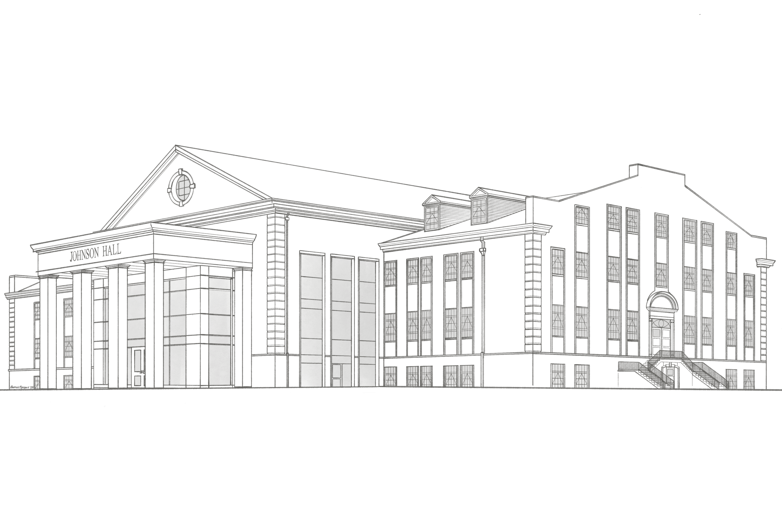 As of the fall of 2025, the College of Business is currently renovating its building, Johnson Hall, on campus. While working for the College of Business, I was tasked to create an illustrative line drawing of the renovated face of Johnson Hall, as well as the original side of the building, to showcase the way the building will look once the renovations are finished for their annual business magazine. Using the architectural drawings, 3D renderings, and photos I took myself of Johnson Hall, I created a sleek-looking illustration for their spreads.